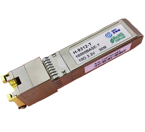 H-9312-T是一款萬兆SFP+電口模塊,其采用RJ45接口,最高速率可達10G,傳輸距離最遠能夠達到30m。萬兆電口模塊主要是集成在交換機、網卡等產品上,廣泛應用于萬兆以太網中。